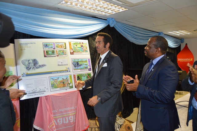 "BotswanaPost launched a series of commemorative stamps displaying the Okavango Delta as a World Heritage Site on the 15th of July 2015 at Poso House, Gaborone, Botswana. His Excellency The President of The Republic of Botswana Lt. General Seretse Khama Ian Khama, was present to do the unveiling of the stamps which portray artistically research, basketry, photography, film making and usage of natural resources.